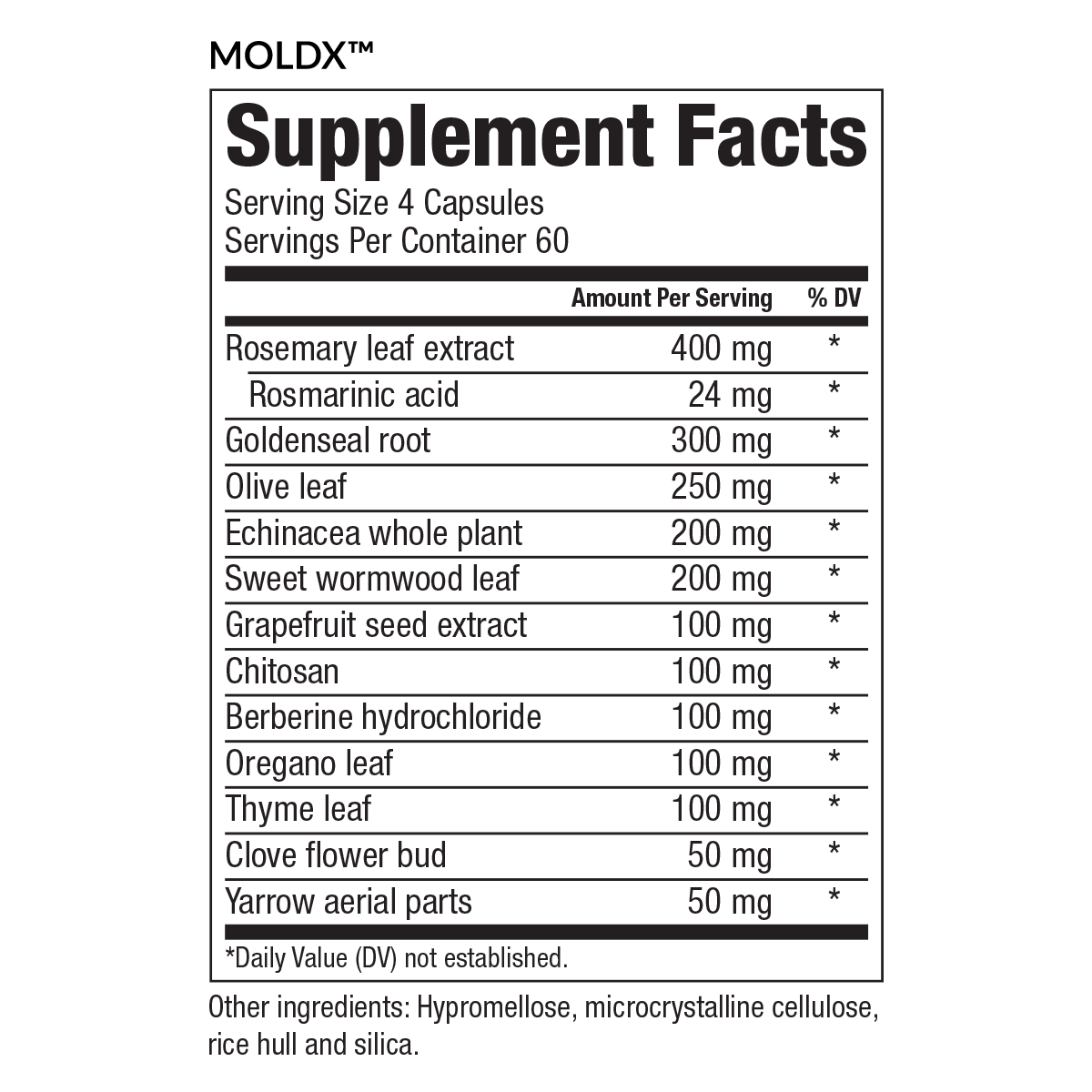 EquiLife's MOLDX™ uses a carefully selected combination of herbal ingredients, including; Rosemary Leaf Extract, Goldenseal, Olive Leaf, Echinacea, Wormwood, Yarrow, and many more. This powerful blend targets mold and fungal toxins and breaks them down so that they can be moved to the liver where other products can support the safe and speedy removal of these harmful toxins from the body.