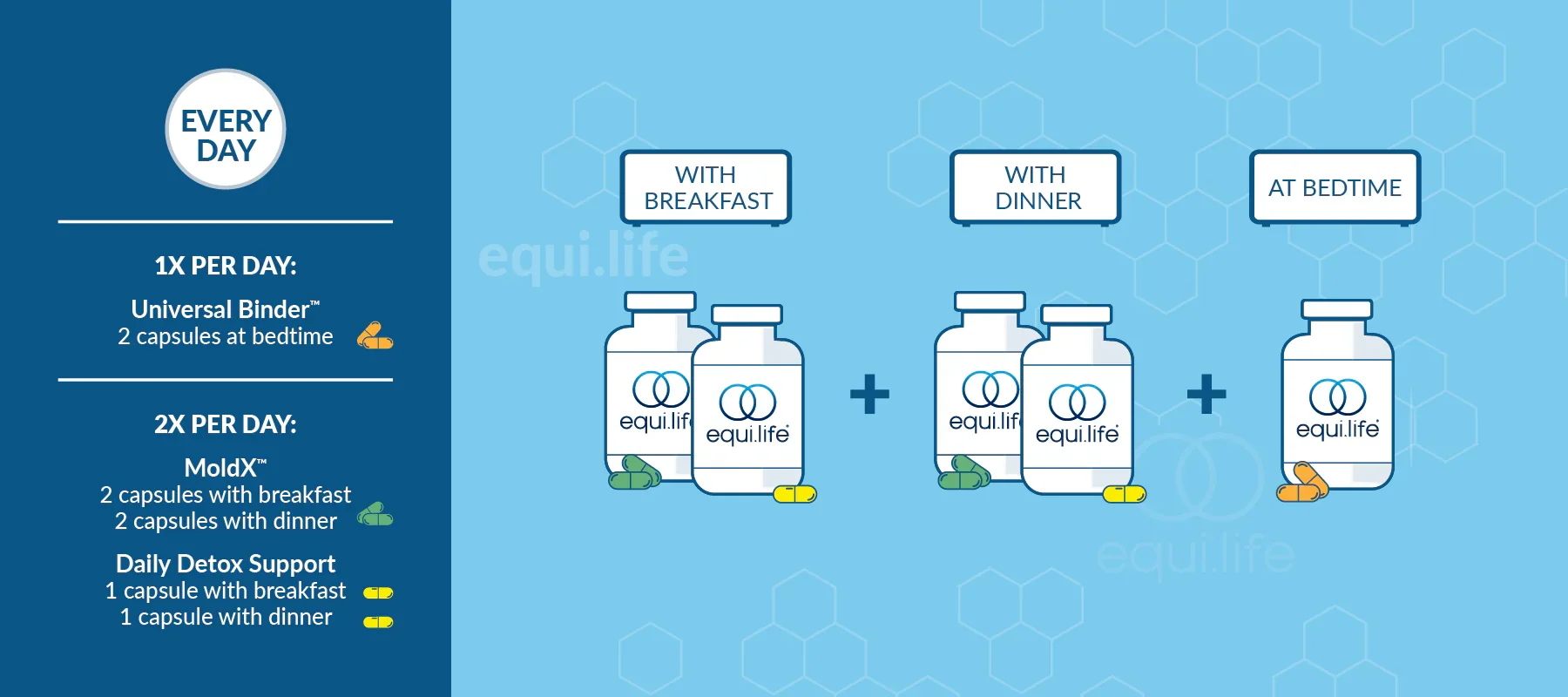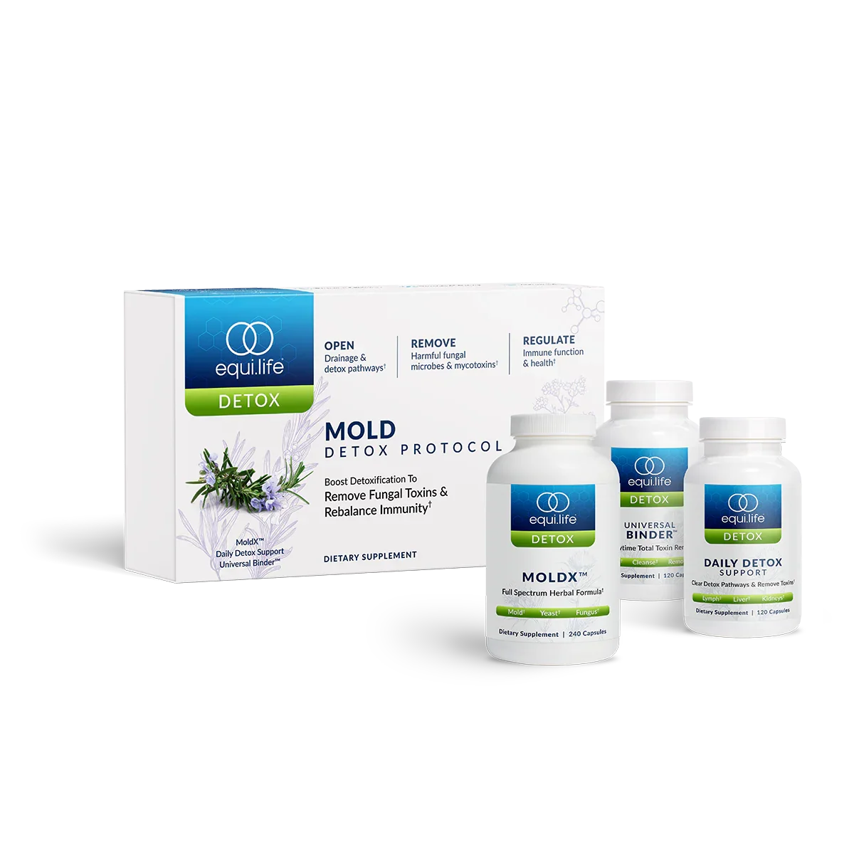 Thankfully, our bodies can process and metabolize mycotoxins, if our natural detoxification pathways are functioning properly and our immune system is supported with antioxidants and beneficial compounds to help eliminate mold – which is where EquiLife's comprehensive Mold Detox Protocol comes in.